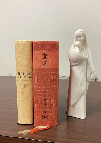 お姉ちゃんへ報告:マリア像と聖書、讃美歌の本は家の近くの教会に寄与したよ。そして、とても喜んでくれたよー。